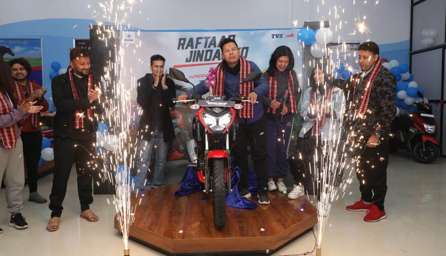 नयाँ शोरुमको उद्घाटन संगै कम्पनीले कार्यक्रम मार्फत यूवा लक्षित १ सय २५ सीसी श्रेणी अन्तर्गतको अत्याधुनिक फिचर्स सुसज्जित नयाँ मोटरसाइकल, टीभीएस रेडर पनि सार्वजनिक गरेको छ । ‘टीभीएस रेडर’ मोटरसाइकल सार्वजनिक कार्यक्रममा सप्तरंग ३ का गायक राम कृष्ण ढकाल, अनिल सिंह, प्रमोद खरेल, बद्री पगेनी, गायिका मिलन नेवार, अस्मिता अधिकारी, हाँस्य कलाकार राजा राजेन्द्र पोखरेल, मिडिया व्यक्तित्व नरेश भट्टराई र निता प्रधांगना, टिक–टक स्टार उषा उप्रेती लगायतको उपस्थिती रहेको पनि विज्ञप्तिमा उल्लेख छ ।