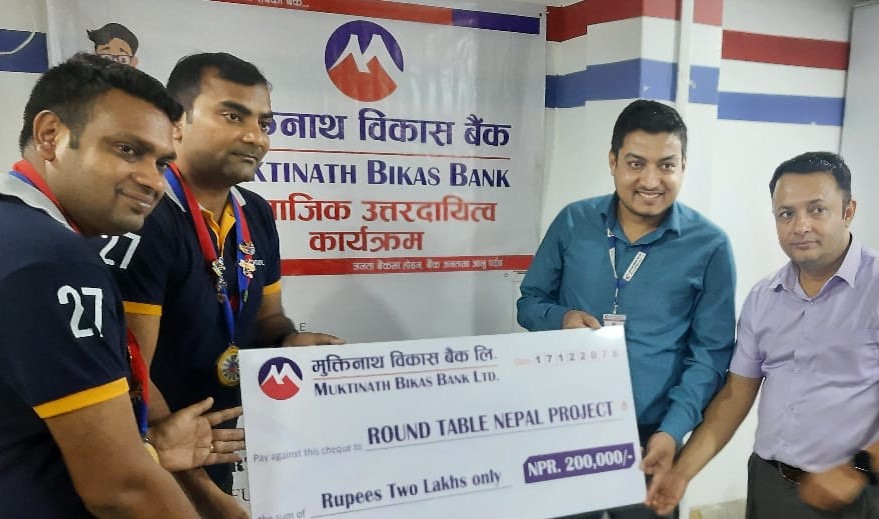 बैंकले बिर्तामोड स्थित राउन्ड टेबल नेपाललाई एक कार्यक्रम बीच उक्त रु २ लाख को (चेक) हस्तान्तरण गरेको छ । उक्त कार्यक्रममा बैंकका तर्फबाट प्रदेश नं १ का प्रमुख मनोज विष्ट, बिर्तामोड शाखाका प्रबन्धक हरि ओझा र अन्य कर्मचारीहरुको उपस्थिति तथा राउन्ड टेबलको तर्फबाट अध्यक्ष सुनिल जैसवाल तथा अन्य आधिकारिक सदस्यहरुको उपस्थिति रहेको थियो ।
